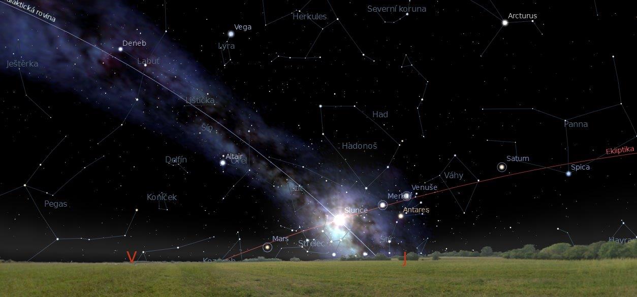 ale Labuť klesá pomalu pod severní obzor (dolní kulminace probíhá 12. února) a viditelná zůstane pouze Deneb.