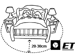 To protect yourself against geopathic zones, the ET is to be used at the bed in this way: In some cases, it is sufficient to place the ball anywhere in your bedroom. To reach the highest efficiency, it is recommendable to place the ET on the floor very close to your bed (20 to 30 cm far from it), with its grooves upwards (the ball axis perpendicularly to the earth). The orientation of the ball does not matter too much. To enjoy the maximum efficiency for your double bed, it is recommendable to use two balls. Thus, every person has his/her own ball.
